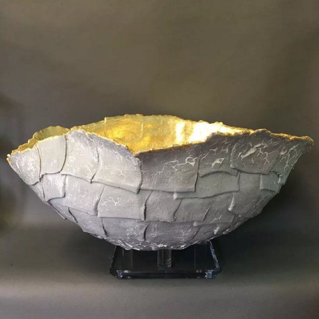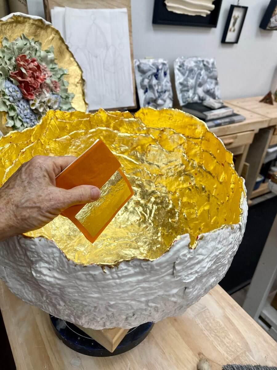 I use gold when a piece asks for quiet warmth. The base color changes the mood; I work in every color, though white-and-gold is most requested because it lives easily with many interiors.