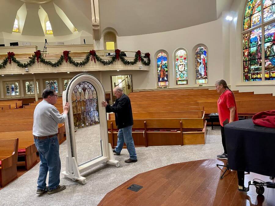 - Damaged Windows – Did a windstorm leave a window shattered? Or maybe you just have a couple of broken pieces? We match glass colors, painted styles, and if necessary, reconstruct the artwork of damaged/missing stained glass